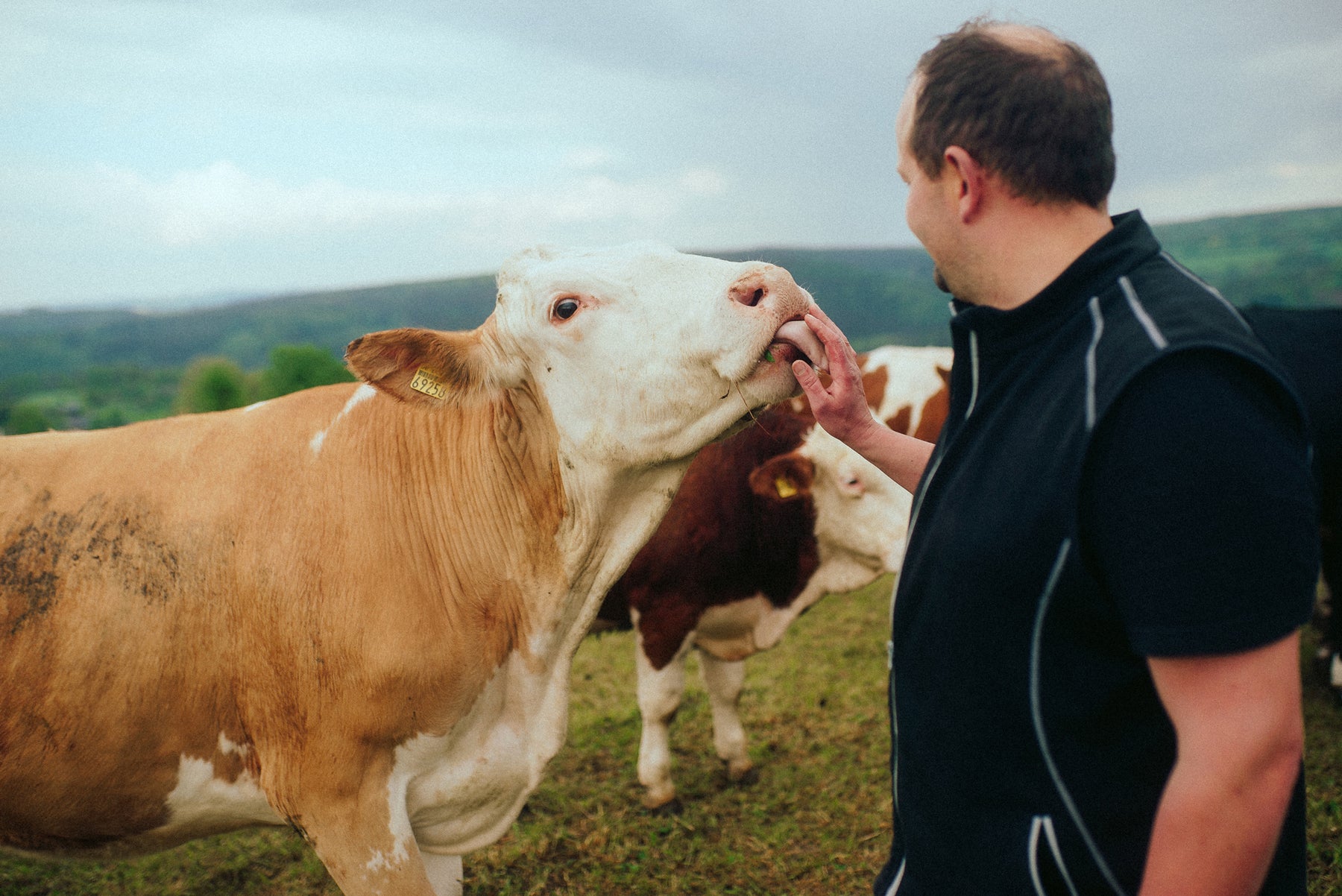 Seit fünf Generationen betreiben wir einen Bauernhof, der auf nachhaltige Landwirtschaft setzt. Auf unseren 110 Hektar Grün- und Ackerland bauen wir Weizen, Hafer, Roggen, Gerste und Erbsen an. Zudem engagieren wir uns für den Naturschutz und schaffen Blühflächen für Bienen. Unsere Tiere erhalten frisches, vor Ort geschrotetes Futter aus eigenem Getreide.